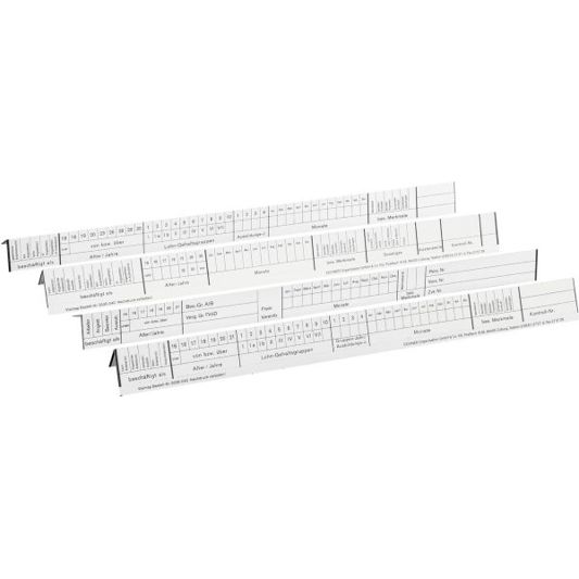 Unsere Organisations-Streifen für Personalhefter sind die perfekte Lösung, um Ihre Mitarbeiterinformationen übersichtlich zu gestalten. Mit diesen praktischen Streifen erhalten Sie eine schnelle Übersicht über wichtige Details wie Qualifikation, Alter, Lohn- und Gehaltsgruppe sowie die Beschäftigungsdauer Ihrer Mitarbeiter.