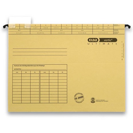 Die ELBA Hängemappen vertic ULTIMATE in elegantem naturbraun bieten eine ideale Lösung für die strukturierte Ablage und Ordnung Ihrer Dokumente. Mit der Artikelnummer 100331249 vereinen sie Funktionalität und ansprechendes Design in einem. Jede Mappe ist gefertigt, um Ihre Unterlagen sicher und ordentlich zu verwahren, sodass Sie jederzeit auf die benötigten Informationen zugreifen können.