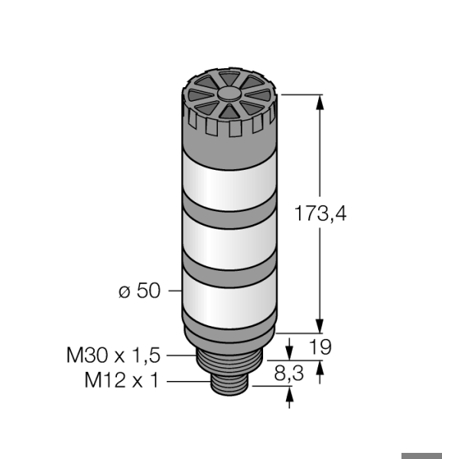 3083214 - TL50GYRAQ / LED-Anzeige Signalsäule Schwarzes Kunststoffgehäuse, Schutz gegen elektromagnetische und hochfrequente Störungen, Schutzart IP50, Stecker M12X1 Betriebsspannung: 18...30 VDC oder 24 VAC bei jeweils 45mA pro LED-Farbe, Eingänge: PNP / NPN Farben: Grün (COL 1) / Gelb (COL 2) / Rot (COL 3)
