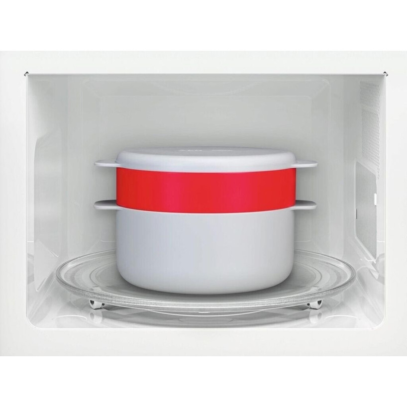 Hergestellt aus hochwertigem Metall, bringt die Mikrowelle Robustheit und Langlebigkeit in Ihre Kochroutine. Die elektronische Steuerung ermöglicht eine einfache und präzise Bedienung über die seitlich angeordneten Tasten. Sie profitieren von insgesamt 5 Leistungsstufen, die sicherstellen, dass Ihre Speisen immer perfekt gegart werden.
