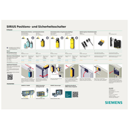 Die Anordnung der Schaltpunkte und die Befestigung entsprechen den Normen EN 50047 und EN 50041, und das Gerät ist weltweit nach IEC und UL zugelassen. Für höchste Sicherheitsanforderungen sind Konfigurationen erhältlich, die PL e oder SIL 3 erfüllen. Die integrierte ASIsafe-Elektronik zeichnet sich durch ihren geringen Stromverbrauch aus. Je nach Ausführung stehen verschiedene Gehäusegrößen, Schaltglieder sowie Optionen mit LED-Statusanzeige und M12-Stecker zur Verfügung. Die Reihe 3SF1, die eine direkte Anbindung an das Bussystem AS-Interface ermöglicht, ergänzt das Angebot. Ergänzendes Zubehör, einschließlich Antriebsköpfe und Stecker, ist je nach Ausführung erhältlich. Vertrauen Sie auf SIRIUS für Ihre Sicherheitslösungen.
