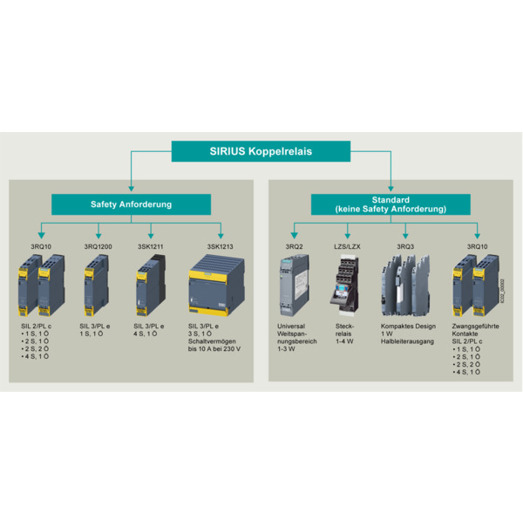 Ausgangskoppler Relaiskoppler, 1 W, DC 24 V Arbeitsbereich 0,7...1,25 x US Gehäusebreite 6,2 mm Federzuganschluss (Push-In) thermischer Strom 6A (siehe Derating Kennlinie) (mit lackierter Flachbaugruppe) Koppelrelais mit Relaisausgang (nicht steckbar) SIRIUS 3RQ3 für die galvanische Trennung, Verstärkung und Signalanpassung zwischen Steuerung und Peripherie. Sehr schmal und kompakt. Schnelles und fehlerfreies Verdrahten auf Grund der durchgängigen Brückbarkeit aller Potenziale. Mehrere Beschriftungsflächen zur Klemmen- und Gerätekennzeichnung vorhanden. Lieferbar als Koppelrelais mit Relaisausgang, mit Halbleiterausgang oder mit Steckrelais, mit verschiedenen Betriebsspannungen und Ausgangsströmen sowie mit hartvergoldeten Kontakten oder mit Hand-Automatik-Umschaltung. Einheitliches Zubehör für sämtliche Gerätevarianten, wie z.B. Verbindungskämme, Klippschilder oder Potenzialtrennplatten vereinfachen die Auswahl und die Lagerhaltung. SIRIUS Relais - ein Programm für alle Fälle.