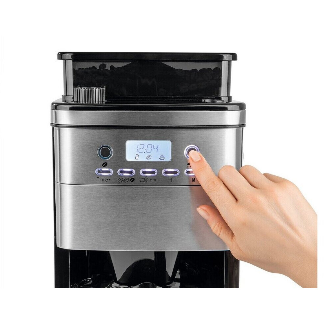 | Einstellmöglichkeiten: | Kaffeestärke, Mahlmenge, Mahlgrad, Brühzeit |