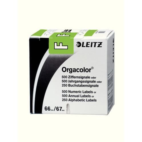 Entdecken Sie die hochwertigen Orgacolor® Buchstabensignale von Leitz in einem strahlenden Grün, die Ihre Registratursysteme optimieren. Jedes Signal ist aus robustem Kunstdruckpapier gefertigt und besticht durch eine Lichtechtheit von 8, dem höchsten Wert nach DIN 54003. So bleibt die Farbe über lange Zeit intensiv und verblasst nicht.