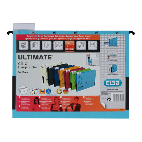 Entdecken Sie die ideale Lösung für eine komfortable Lose-Blatt-Ablage mit der ELBA chic ULTIMATE Hängetasche. Sie besticht durch ein elegantes blaues Design und wurde aus hochwertigem Kraft-Karton gefertigt, der eine Stärke von 240 g/m² aufweist. Diese Hängetasche bietet ausreichend Platz für bis zu 330 DIN A4-Blätter, sodass Sie Ihre Dokumente stets ordentlich und übersichtlich aufbewahren können.