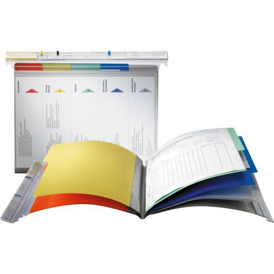 Ein besonderes Highlight sind die 5 farbigen Heftmechaniken im Bodenteil, die nicht nur für Stabilität sorgen, sondern Ihnen auch helfen, Ihre Dokumente nach Farbcodes zu organisieren. Mit der gewinkelten Terminkopfleiste vorne und einer geraden Kopfleiste am Rückendeckel haben Sie zudem die Möglichkeit, verschiedene Organisationsstreifen und farbige Namensschilder aufzunehmen, sodass Ihre Mappe ganz nach Ihren Wünschen angepasst werden kann.