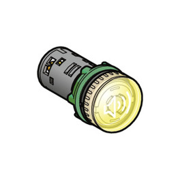 Signalgeberkombinationen LED/Summer mit Quittierung Typ Werma 450. LED-Dauerleuchte mit zuschaltbarem Dauerton. Störungen werden durch ein optisches oder optisch-akustisches Signal angezeigt, abschalten des akustischen Signals durch leichtes Drücken; Lautstärke: 80 dB, Lebensdauer: 50.000 h (Akustik min. 5000 h), Gehäuse: PC/ABS-Blend, Temperaturbereich: –20 bis +50 °C, Stromaufnahme: < 80 mA, Schutzart: IP 65, Maße: Ø 49, H 80 mm, Montagebohrung: Ø 22,5 mm Mit AS-Interface-Bus. Versorgung AS-Interface: über Bus-Leitung, Betriebsspannung 25 bis 31,5 V (gemäß AS-Interface-Spezifikation), Quittierfunktion mit Rückmeldung der Summerabschaltung über AS-Interface-Bus, Dauerton: 2,8 kHz, Anschlüsse: Schraubklemmen mit Drahtschutz (max. 1,5 mm²). Typ: 450 110 55, 30 VDC, rot