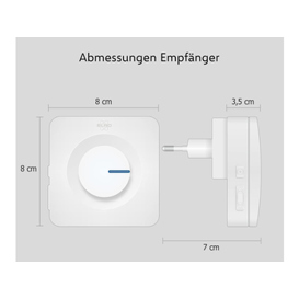 Mit 64 auswählbaren Melodien und einem lautstärkeregler von bis zu 110 dB, lässt sich das Signal ganz nach den persönlichen Vorlieben anpassen. Besonders für schwerhörige Menschen ist das Set eine Erleichterung - die integrierte LED am Türgong leuchtet auf, sodass kein Klingeln übersehen wird.