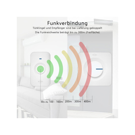 Das System bietet eine eindrucksvolle Funkreichweite von bis zu 300 Metern, wodurch es selbst in größeren Wohnungen oder Häusern zuverlässig funktioniert. Diese Reichweite kann jedoch von Wänden und anderen Funkfrequenzen beeinflusst werden. Das 100% störungsfreie Digitalsignal gewährleistet, dass das Türklingel-Set auch in schallgedämmten Umgebungen einwandfrei arbeitet.