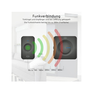 Das Set bietet Ihnen eine beeindruckende Funkreichweite von bis zu 300 Metern, wodurch es auch in großen Haushalten problemlos einsetzbar ist. Dank des 100 % störungsfreien Digitalsignals funktioniert die Türklingel stets einwandfrei, selbst in schallgedämmten Umgebungen.