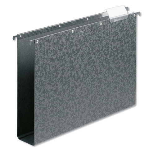 Entdecken Sie den praktischen ELBA vertic Hängesammler, ideal für die ordentliche Aufbewahrung von Katalogen und schweren Unterlagen. Gefertigt aus robuster 1,6 mm starker Hartpappe aus Recyclingmaterial, bietet dieser schwarze Hängesammler Stabilität und Langlebigkeit. Die großzügige Breite von 40 mm am Boden sorgt dafür, dass auch umfangreiche Dokumente sicher verstaut werden können. Mit seinem offenen Design und der angenieteten Metallhängeschiene ist der Zugriff auf Ihre Unterlagen mühelos.