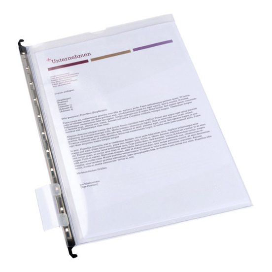 In der zeitlosen farblosen Ausführung passt die ELBA vertic Hängesichttasche in jedes Umfeld und setzt Ihre Dokumente gekonnt in Szene.