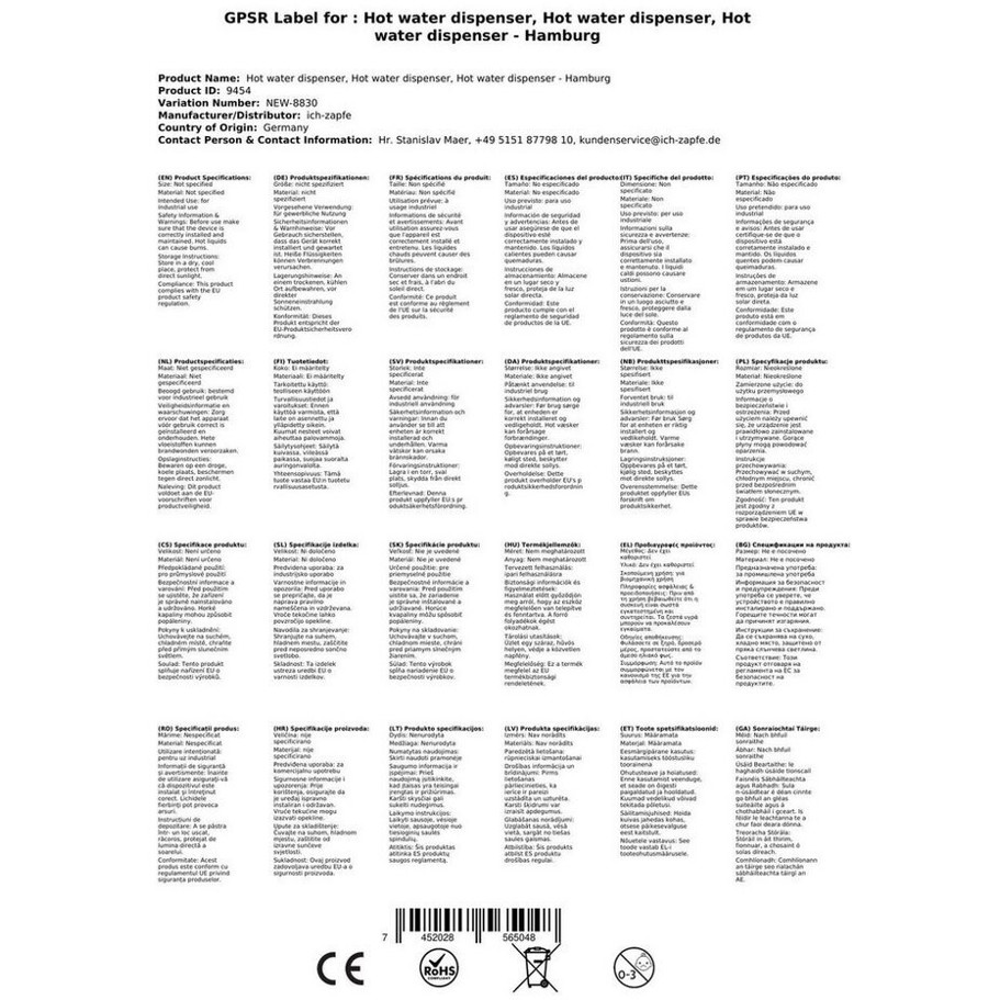 | Produkttyp: | Heißwasserspender |