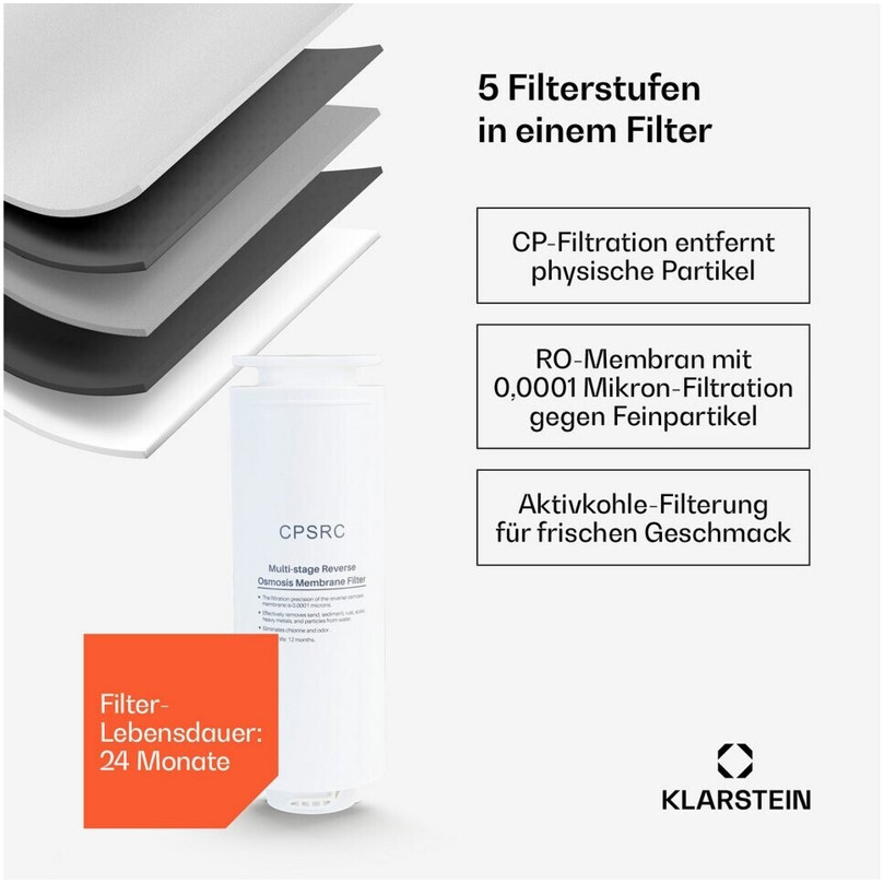 Klarstein WFT1 VitalPour Wasserfilter - Hochwertige Wasseraufbereitung für Ihr Zuhause