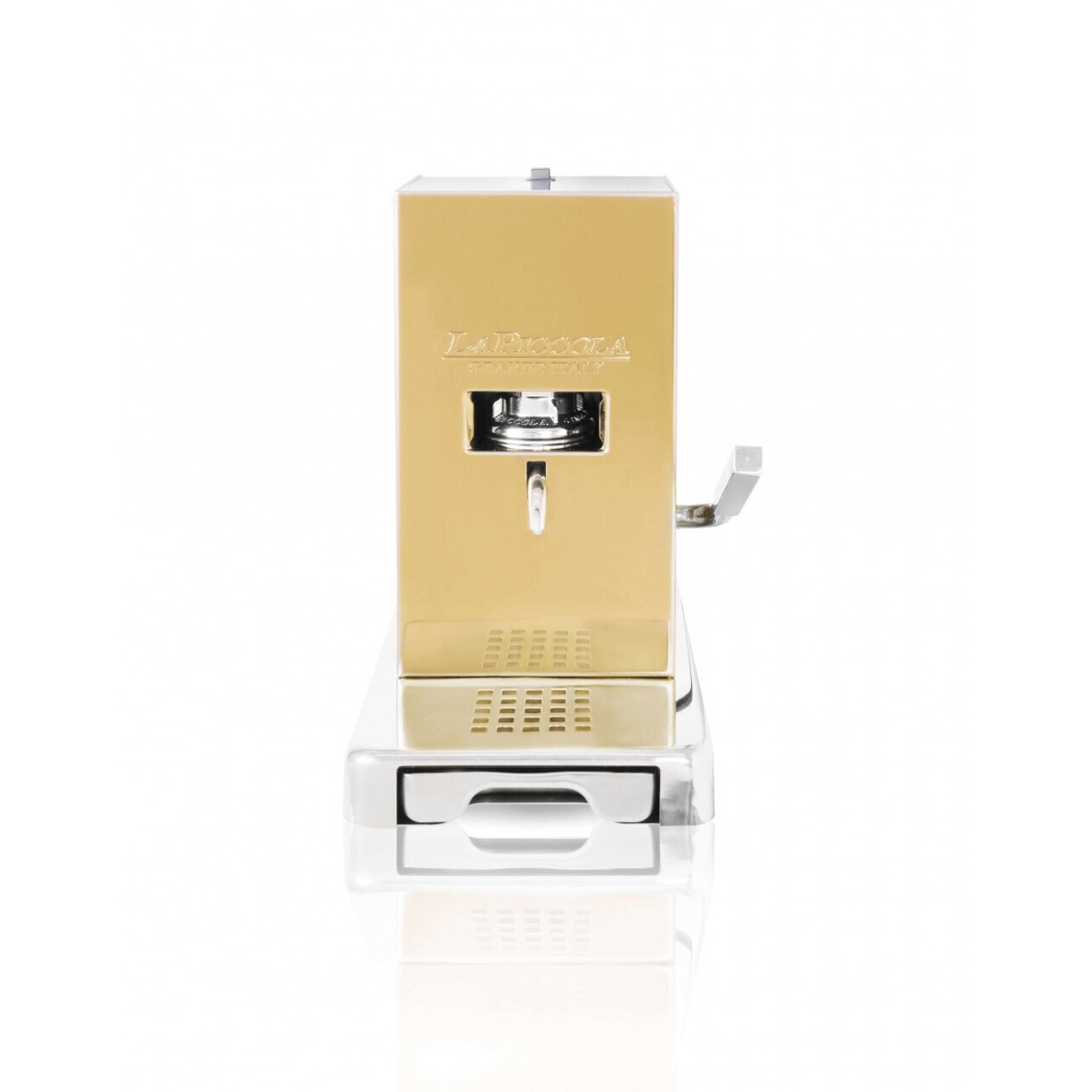 Erleben Sie mit La Piccola Piccola gold den perfekten Genuss von frisch gebrühtem Espresso in den eigenen vier Wänden! Diese elegante Padmaschine kombiniert Funktionalität mit stilvollem Design. Ihr Gehäuse aus hochwertigem Edelstahl garantiert nicht nur Langlebigkeit, sondern verleiht Ihrer Küche auch einen modernen Touch.