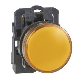 Komplettgerät, Kunststoffprogramm DM 22 mm. Leuchtmelder. Leuchtmelder, flach, orange. Spannung 24 V AC/DC. Komplettgerät, rund, Bright-LED, mit Schraubanschluss. Lieferung Mit Befestigungsflansch und Hilfsschalterblock. Kunststoffausführung DM 22,5 mm. Einfache Montage Selbstverrastender Schnellverschluss. Gleiche Hilfsschalterblöcke wie für XB4-Metallprogramm.