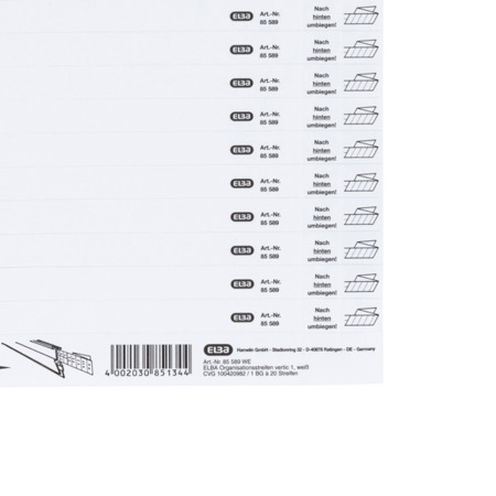 Organisationsstreifen für ELBA vertic | 160 g/m² Karton | zum Einstecken in die Organisationsleiste | blanko | weiß | Beutel mit 10 Bögen à 20 Streifen