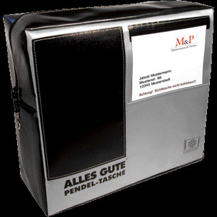 Die ALLES GUTE® Pendeltasche in Größe L ist Ihr unverzichtbarer Begleiter für unterwegs. Hergestellt aus strapazierfähiger LKW-Plane garantiert sie eine hohe Langlebigkeit und ist dennoch leicht zu tragen. Ihr elegantes Schwarz-Silber Design macht sie zu einem stilvollen Accessoire, das in jede Umgebung passt.