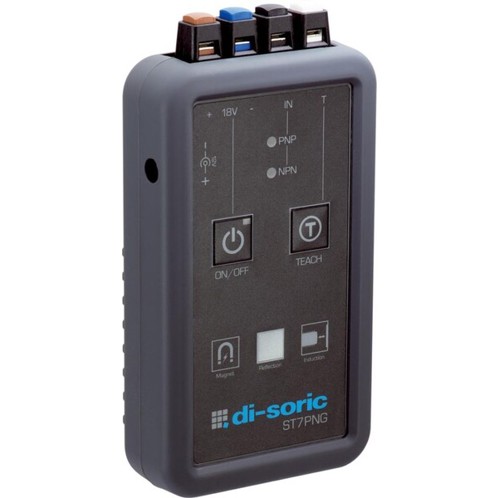 Sensortester ST 7PNGSensortester Geeignet für: pnp-, npn- und Gegentakt-Sensoren Leerlaufstrom (max.): 40 mA Ausgangsspannung: 18 V DC Schutzart: IP 21 Anschluss: Schnellspannbuchse Strombegrenzung: 60 mA bei Batteriebetrieb, 240 mA bei Betrieb mit externem Netzteil Stromversorgung: 1,5 V Batterien Typ AA (3x), externes 12 V DC Netzteil (optional)